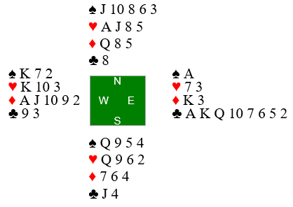 Dette er N/S kort som ikke er så enkle å melde hvis motparten er med i meldingene, noe som skjedde ved endel bord.