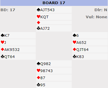 Ved det andre bordet spilte våre lagkamerater 4 spar doblet som N/S og noterte +590.