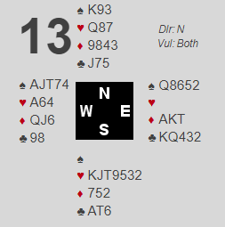 I det fjerde spillet (alle i sonen) satt Erik Berg med dette og hørte Versace til høyre åpne med 1 kløver.
