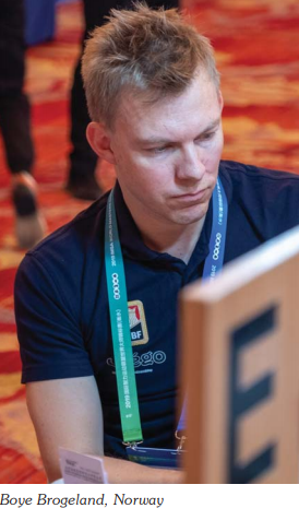 I den nest siste runde av denne sesjon fikk jeg altså ikke med meg hva som skjedde ved Brogeland-Bakke sitt bord, men live-oppdateringen (kun scorene) viser at de tapte runden. De ligger imidlertid fortsatt på tredjeplass, men det har blitt 22 MP opp til Brink-Drijver på andreplass, og franske Bernard-Lhuissier på fjerdeplass ligger nå kun 5 MP bak det norske paret. I den siste runden før lunsj avsluttet Brogeland-Bakke godt: