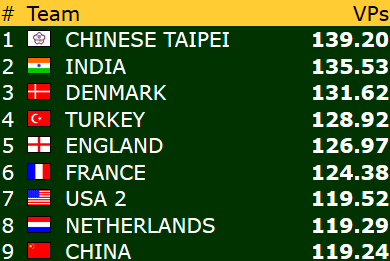 Vi ønsker damene lykke til videre i mesterskapet! Allerede i neste kamp kan deres jakt på flere IMP og vinnerpoeng følges direkte på BBO. Motstander er USA 2, og Norge stiller med Marianne - Ann Karin og Bodil - Liv Marit.