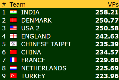 Norge - India 17,45 - 2,55 (IMP-score: 45 - 10)