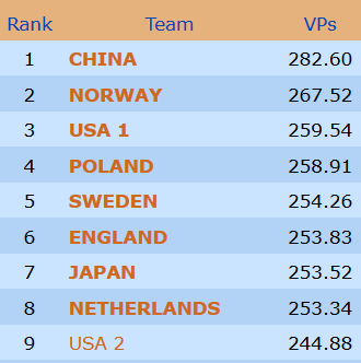 Sluttresultatene for de norske lagene ble som følger i runde 21: