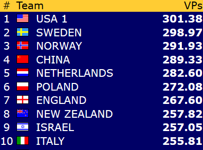 Norge hadde utgangssving inn både i åpen klasse og dameklassen, mens veteranene hadde utgangssving ut.