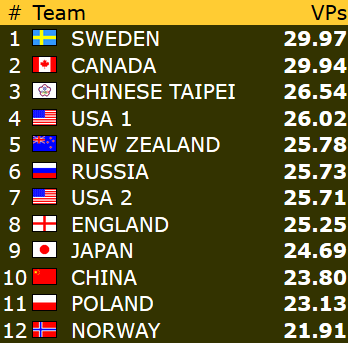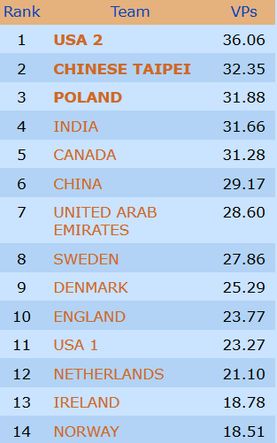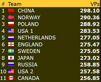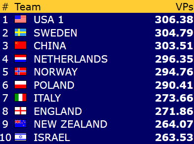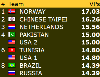 Etter 15 runder spilt torsdag er Norge nr 9 i åpen klasse mens damene ligger på en flott 4. plass mens veteranlaget nå ligger helt nede på 19. plass. 8 runder gjenstår og vi kan med flaks være kvalifisert for sluttspill i minst en gruppe- håpet er klaff i to!