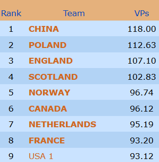 Her er resultatene for de norske lagene i tirsdagens andre runde, som er den åttende runden totalt i mesterskapet: