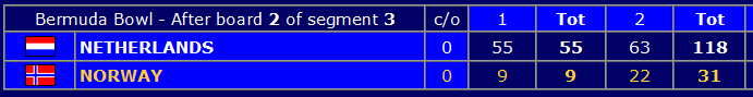 Norge - Nederland 9,09 - 10,91 (IMP-score: 21 - 24)