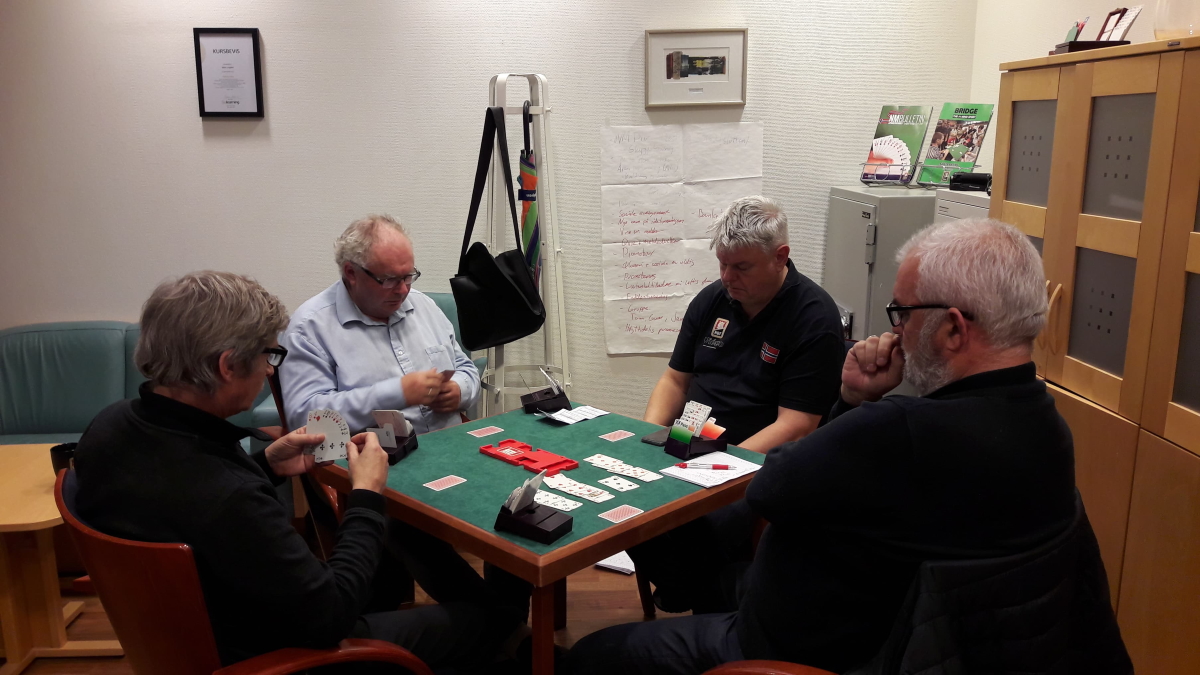 Lag Anderssen vant det tredje settet i veterankvaliken med 3 IMP, og knappet dermed litt innpå forspranget til lag Johnsen. Før morgensdagens to avgjørende sett leder sistnevnte med IMP-sifrene 91-73. Dermed lever kampen i beste velgående før de 32 siste spillene.