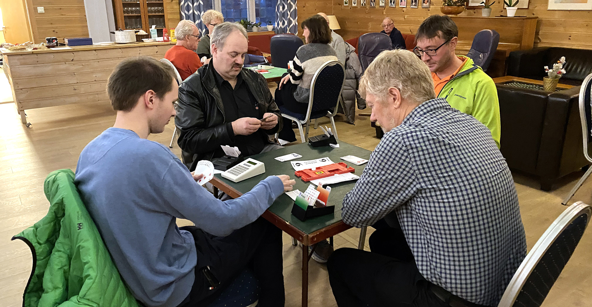 10 fulle bord og en god romjuls stemning med winerpølser , men det var veteranene Per Egil og Petter som viste hvor skapet skulle stå og de vant med 119 poeng (63,77%) de ble fulgt av Egil og Erik som vartet opp med 95 poeng (61%) og siste plass på pallen gikk til Jens og Bjørn med 67 poeng (57,75%) vi gratulerer med plass på pallen og ønsker alle en fortsatt strålende god jul og et riktig godt nytt år. Vi starter opp 7 januar med en ny turnering, alle er velkommen til å spille hos oss på tirsdagene.