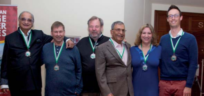 Lars Emil Rode (V) forteller at han passet i åpning, det samme gjorde Atle Evensen (N) og Hellen Ødegaard (Ø) men så åpnet jo Arild Simensen (S) med 1 hjerter og Lars måtte påny passe. Men etter et invittbud fra Nord i hjerter kom Syd etter hvert i 4 hjerter. Bet på egen hånd tenkte Rode og tok fram doblingskort og det ble kontrakt. Jeg sitter nok med tre stikk i trumf pluss et ess og er hj J i bordet vil nok makker bidra med litt?