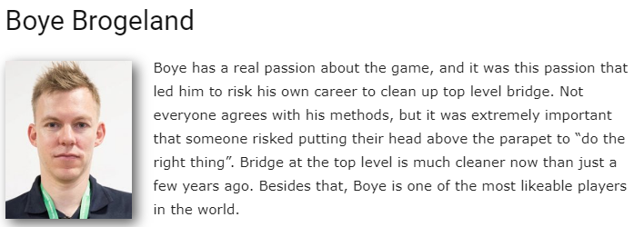 Boye Brogeland har fått plass i EUROPEAN BRIDGE LEAUGE HALL OF FAME!