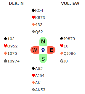Nord for lag STREET var i 6 hjerter og fikk ruter dame i utspill fra øst. Dette ser nesten ut som en klassiker, en safevariant for kun en trumtaper. Det er imidlertid ikke helt som tatt fra læreboka.