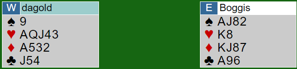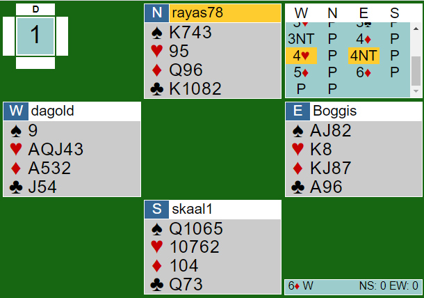 Vi har altså flyttet ruter ess over til nord og ruter 6 til syd. Samme kontrakt, samme utspill.