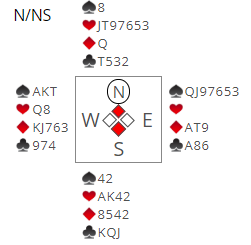 Igjen ble jeg altså flyttet over til nords plass i spilleføringen. Man slipper å være blindemann i de turneringene!