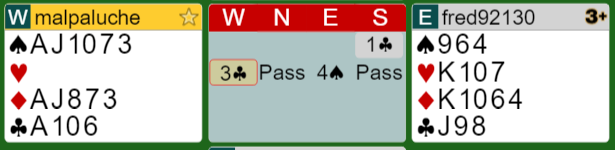 Syd hadde åpnet (1 kløver). Er dette en god utgang (4 spar)?