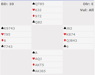 Vi endte i 6 kløver, ikke akkurat med full styring, men det var en spillbar kontrakt.