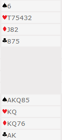Nei, det er vel ikke så dårlig om en ser bare på N/S sine kort. Kløveren må være uten taper siden Ø/V har hjerter ess. I tillegg til det må det sitte sånn noenlunde, så 6 kløver er litt for hardt selv om det er en slem som godt kan fyke hjem.