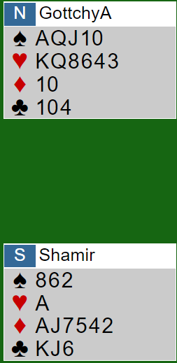 Det som ser ut som en god ruterfarge er et svakt punkt for spillefører siden nord har tieren singel. Hvis en ruterhonnør fra forsvaret slår vekk esset og tar med seg den single tieren blir syds gjenværende ruterbeholdning sårbar med kun knekten og småkort under.