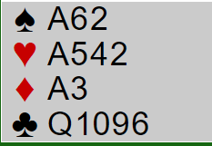 Vest har vist fire hvis han har fulgt deres motspillsavtale. Det er klart at øst kan ha tre spar og utspilleren fem spar selv om vest med norsk fordelingsutspill har vist fire siden han ikke spilte ut den minste sparen (fireren) som han jo normalt ville gjort ifølge «norske» med femkorts farge. Det er jo lov å vise feil fordeling, men da det kan lure makkeren like mye som det lurer spillefører er det ikke så vanlig å «fake» lengden i utspillet.
