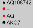 Det er visse muligheter i 6 hjerter om en ser kun N/S sine kort, fordi nord sin hjerter er såpass sterk. Med ruter ut mot 6 hjerter må nok ruterfinessen gå, og så må hjerteren gi kun en taper. Slik det sitter er det to hjertertapere.