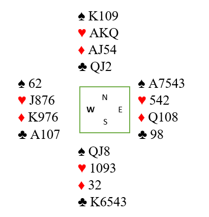 Nords spar 9 vant altså første stikk. Spillefører gikk på kløveren. Hvis vest ser at han må ligge unna med esset to ganger for å bryte spilleførers forbindelse i den fargen, og øst er våken går det galt for spillefører. Det ser etter den starten slik ut: