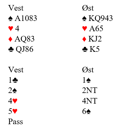 Øst øyner slem, men om vest har minimum og relativt balansert fordeling, eller kortene ikke passer så godt sammen som her (for eksempel singel ruter i stedet) kan det godt være helt håpløst i slem.