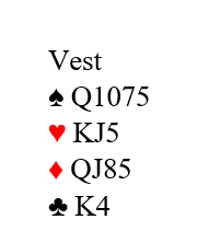 Til slutt tar vi med en nydelig eksempel på bruken av «2NT-spørsmålet» og åpnerens nøyaktige beskrivelse av hånden sin fra en turnering forleden:
