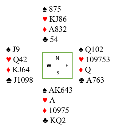 Det ville ikke nord ha noe av og avblokkerte ruter konge under esset. Men da hadde Silla et annet innspill på lager, mot syd. Han fortsatte med sin tredje ruter som syd stakk. Han kunne ta ett ruterstikk til, men så måtte han med kun hjerter igjen spille den fargen opp østs saks. Det gir også ni stikk, men da øst på den siste ruteren kvittet seg med kløver 10, og nord var uoppmerksom et lite øyeblikk visste ikke nord hva hans kulle kaste idet spillefører tok det tredje hjerterstikket. Siden nord kastet spar fikk Silla ett ekstra sparstikk og ti i alt.