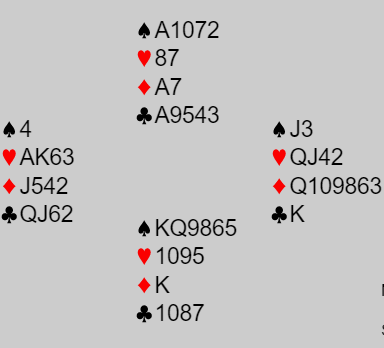 Det blir i dette spillet litt lettere for Ø/V å stampe om vest åpner meldingene med 1 ruter i stedet for 1 kløver, men uansett bør de kanskje klare melde over 4 spar?