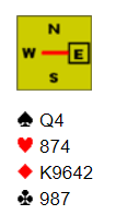 Det blir dog en grense for hva som kan gjøres om på (undo), synes jeg. Hvor den grensen går vet jeg ikke, men det er kanskje noe som må avklares for senere arrangement av denne typen. Jeg klikket selv feil et par-tre ganger. Kun en gang kostet det. Jeg skulle stikke meg inn på kløver ess og så bestemme meg for fortsettelsen. Da jeg satt og tenkte på fortsettelsen hadde spillefører fortsatt med en kløver, og jeg satt der og tenkte! Jeg hadde i stedet for å stikke med esset lagt kløver 8, kortet som stod ved siden av esset. Burde jeg nå fått undo?