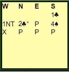 Med denne avtalen bør 2 kløvermeldingen ikke love så sterke kort, med det vil man doble 1NT.