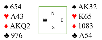 Dine to små ruter kan trumfes opp. Hvis makker har spar ess og dekning i kløver er det ikke tapere i det hele tatt i sparkontrakt. Om han har noe sånt som tre små kløver må han ha noen hjerterhonnører, og er det K-Q gir de to avkast for kløver. Men hvordan vite det sikkert?