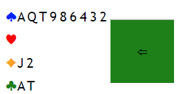 Per åpnet med 1 spar, jeg gikk innpå med 2 hjerter og så hoppet Arnfinn til 4 hjerter, det er et spesielt cue som forteller om trumftilpasning med renons i hjerter. Tone Annette hadde til 5 hjerter men Haltbrekken var ikke utmeldt. På 5 spar derfra doblet makker med pass rundt.