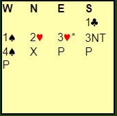 Selv om de får ett stikk i hjerter må kløverfinessen gå for at 3NT skal kunne stå slik kortene var (kongen må sitte hos nord). Altså er utgang usikkert, men ok. Med andre ord kan ikke pass kritiseres pga. utfallet på spillet, at 3NT tilfeldigvis fyker hjem i praksis.