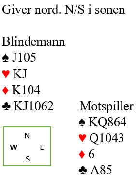 Syd er markert med A-9-x i spar, eller fjerde, men da ser det dårlig ut for forsvaret. Så øst antar syd har eksakt A-9-x. I så fall har spillefører to sparstikk uansett. Da kan det være best å legge liten spar og la syd få sikket, spillefører vil jo få to sparstikk uansett. Hvorfor dette er et poeng får du se om litt.