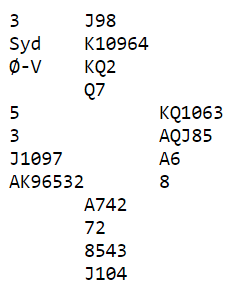 Charlsen hadde ingen problemer med å vinnne ti stikk etter kløver ess i utspill fulgt av skift til hjerter konge, Bergen AK +620. Det ble en taper i trumf, en i hjerter og en i kløver. Om nord skifter til ruter i andre stikk må spillefører spille hjerter før han rører trumfen siden han må bli kvitt sin andre hjerter ved å stjele den. Da kan syd få en ruterstjeling, men som du ser er det i så fall med originalstikket hans i trumf.