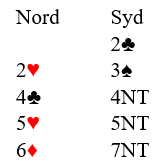 Alt dette er systemteori og avtaler. Det var dog en sjanse for at motparten meldte seg på i dette meldingsforløpet. Vest hadde en svak hånd, men med seks ruter og fire kløver. Hvis han går innpå over 2 kløver blir det straks vanskeligere, men om syd kan få hoppet til 3 spar er det mulig de kan melde videre omtrent som foreslått.