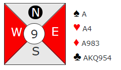 Det er ikke så ofte man tenker på utgang når motparten åpner med en sterk grand. Men her har øst en hånd som godt kan produsere ni stikk helt alene. Så det er ikke noen dum ide å ta sjansen på 3NT.