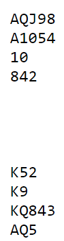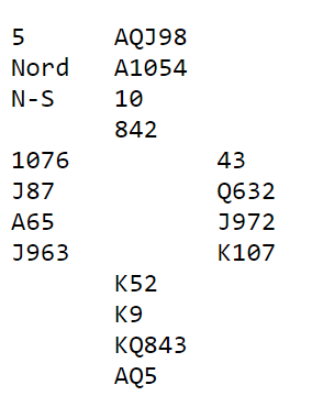 Det kan være en skvis her, mot øst, men da må Ø/V få tatt sine stikk i kløver slik at øst blir satt under press.