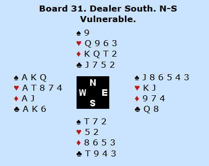 I kampen mellom Norge og Sverige i åpen klasse ble det meldt 7 spar ved begge bord. Fredrik Nyström fikk ruter konge ut, og stakk med esset. Deretter fulgte spar ess, og begge motstanderne fulgte lavt. På spar konge kastet nord ruter.
