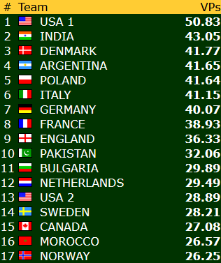 Norge - India 18,77 - 1,23 (IMP-score: 73 - 27)