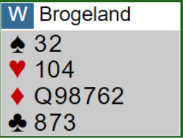 Det er nokså nitrist for slemmelderne, 33 poeng til sammen som er nok til slem normalt, men de 7 du mangler er A-K i samme farge. Så 6NT er sjanseløs. Eller?