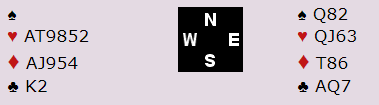 Ett par strekte seg en del lenger enn de andre og havnet i 6 NT. Ofte blir både motspill og spilleføring prega av slike kontrakter. Syd tråkka like greit på motparten med 12 stikk da han spilte ut hjerter 2. Mot 3 NT ville kanskje syd valgt noe mer forsiktig, men mot 6'er kan det ofte være noe i et aggressivt utspill.
