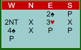 Dette var kampens første spill. Vanlig kontrakt var 4 spar, enten spilt av syd, eller av nord hvis det hadde vært overføringsmelding involvert.