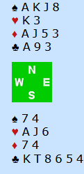 Det ble til at syd spilte ut sin single kløver, men da fikk han et sjokk i det blindemann kom ned: