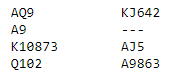 Overskriften sikter til mandagens bravader i Sidsel Elvestad sin Hyggebridge formiddagen mandag denne uka. Som vanlig spilte Terje Solli og undertegnede og mandag erfarte vi påny som en vanskelig dag for suksess. Med 5 spill igjen lå vi tredje siste med ca 30% score, men det kan snu! Så kom spill 10 med Terje (Ø) giver og de andre i faresonen.