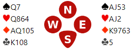 Det bør spilles ruterkontrakt fordi det gir ekstra sjanse ved at hjerter kan trumfes hos nord. Prosentsjansen for å vinne alle tretten stikkene med ruter som trumf overlater jeg til matematikerne å regne ut. Men det er i alle fall en bra sjanse.