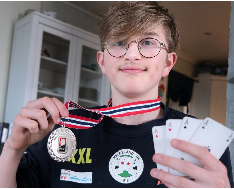 At tenåringer som Nicolai Heiberg Evenstad og andre har modnet og ikke spiller «juniorbridge» lenger har vi som følger med allerede sett. Vi tar med et eksempel fra en turnering hvor Nicolai hadde Boye Brogeland som makker.