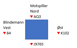 Øst spiller ut hjerter ess (A fra A-K). Dette kommer ned hos blindemann: