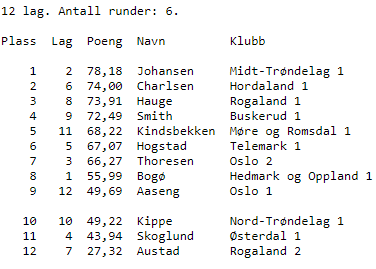 Det står etter 6 kamper her, men dette er etter fem og en halv kamp. De starter fredag med siste halvrunde i kamp nr. 6 (av 11).